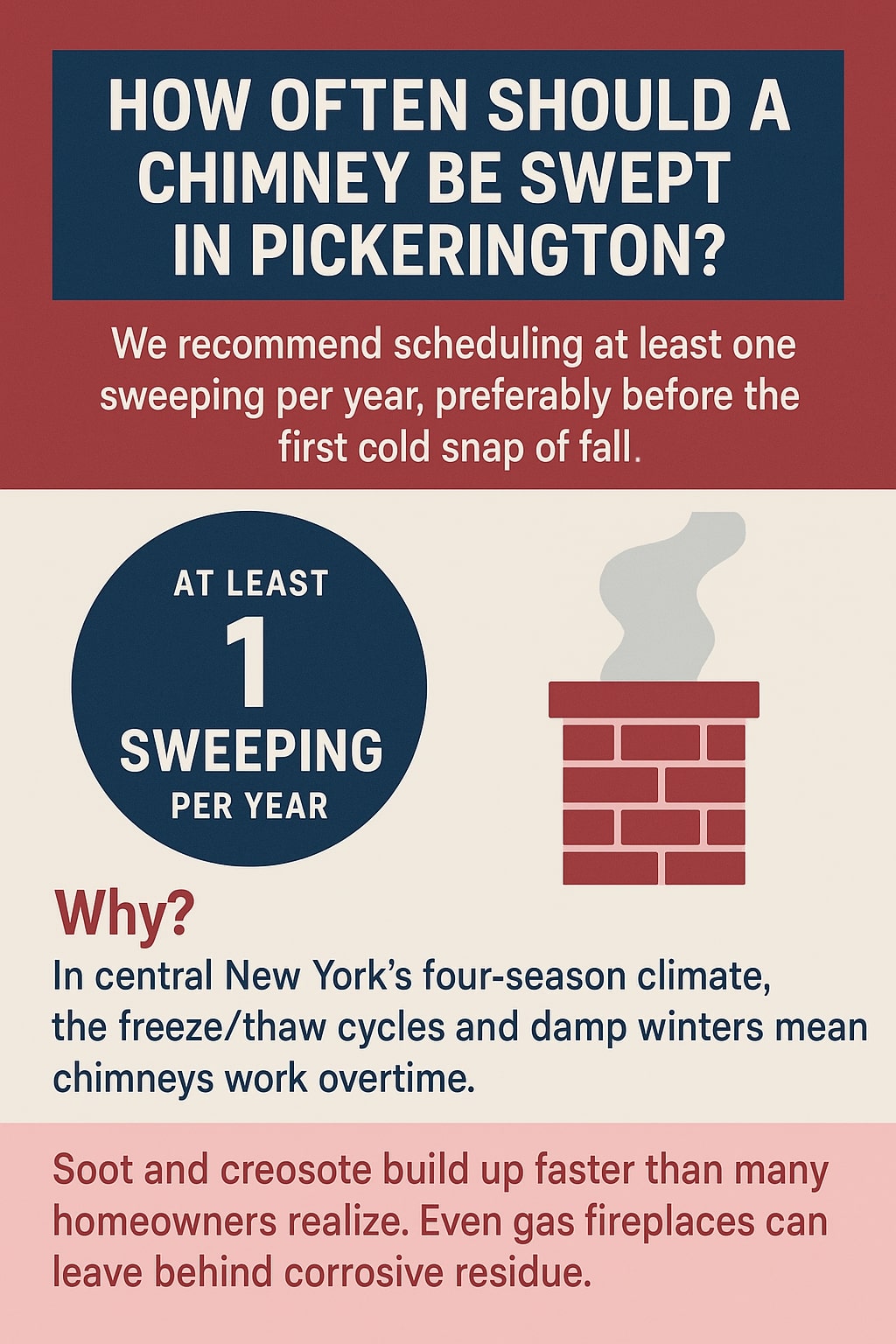 We’ll perform a full sweep, inspect your system from cap to firebox, and make sure your chimney is ready for another cold New York season. Because around here, a clean chimney isn’t just about comfort… It’s about peace of mind for your family and your home. Book your Pickerington chimney sweeping today
